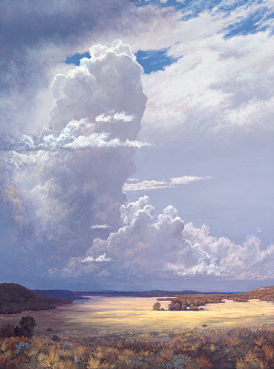 Whether painting in the studio or plein air on the open range, Phil Bob’s passion is clouds—those ever-changing expressions of God’s majesty across the sky.